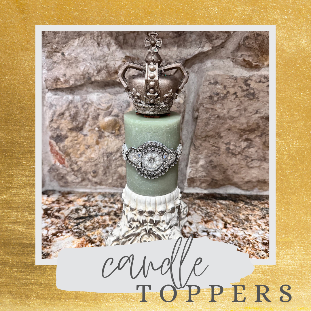 Add glam and elegance to your home with these candle toppers! Every detail matters when it comes to home and office decor and these toppers offer just that. Also makes for a great hostess gift. Toppers sit nicely on top of most pillar candles that are minimum 2-3” wide. Does not include candle or candle pin accessory.